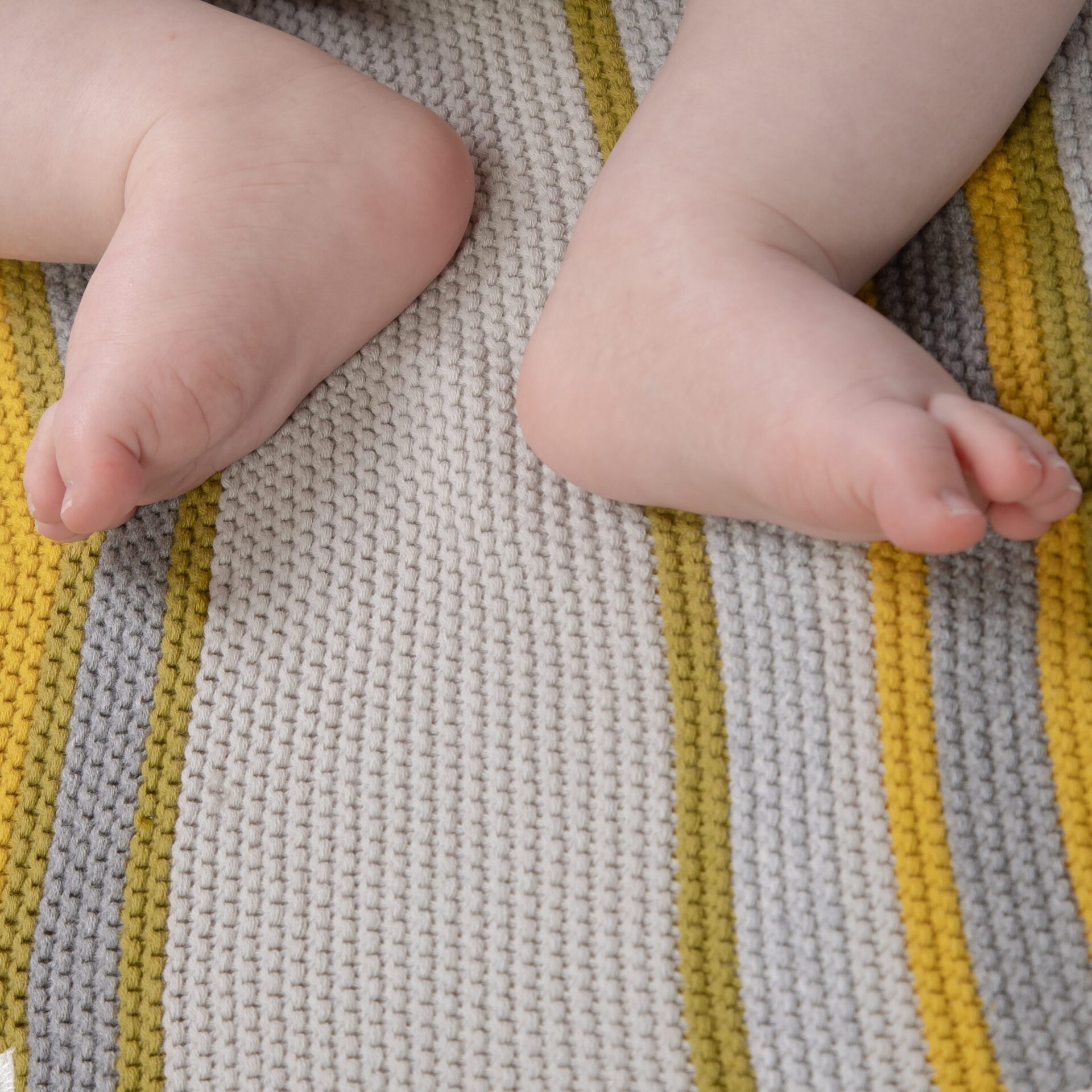 - Super soft and stylish Grey and Yellow Cosatto knitted stripe blanket.