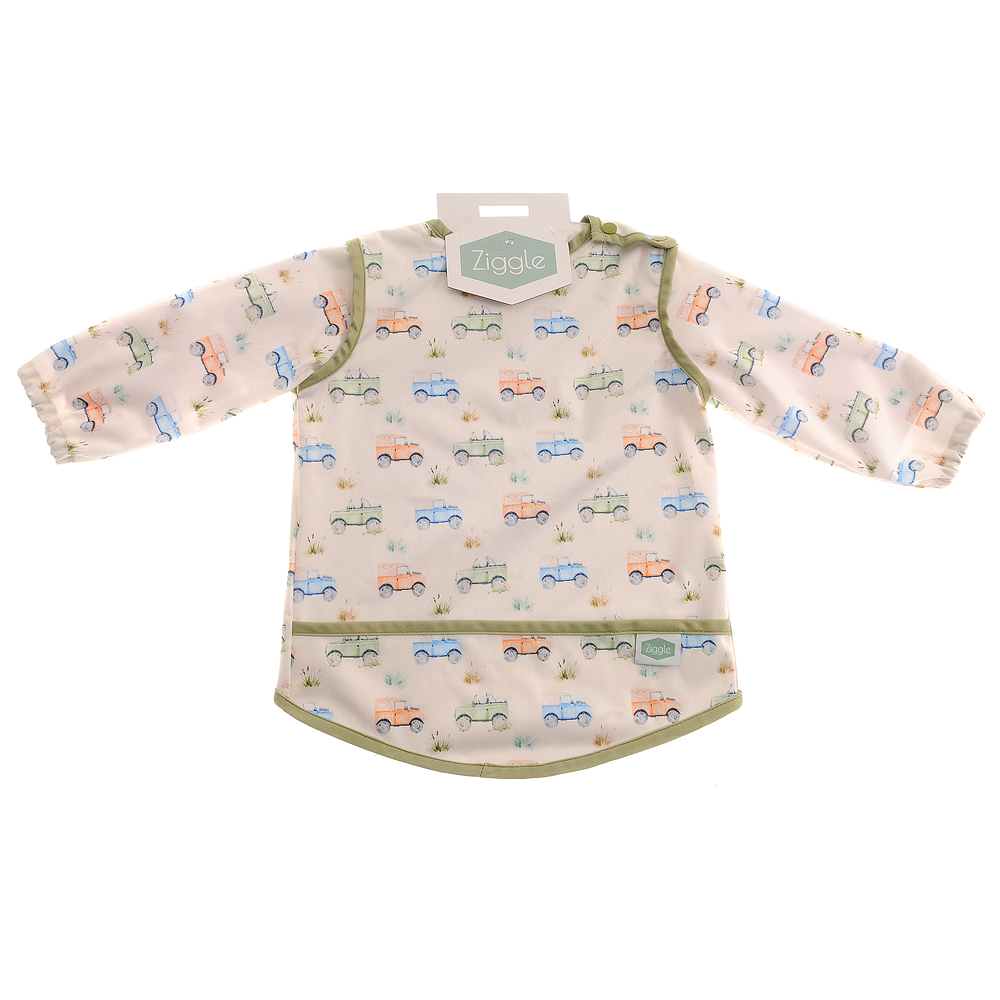 - Cover your little one’s clothes with our Country Life Collection Farm Vehicles design long sleeve bib.